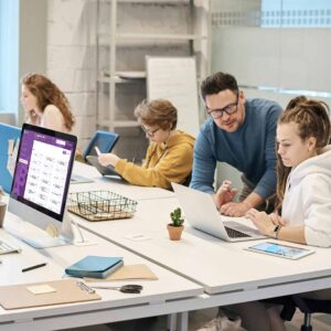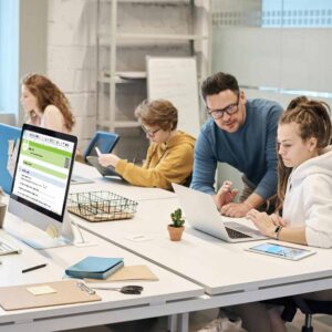 opleidingen voor leerlingen: bij de opleidingen voor leerlingen kan elke leerling aan een computer werken en vergezeld worden door één begeleider